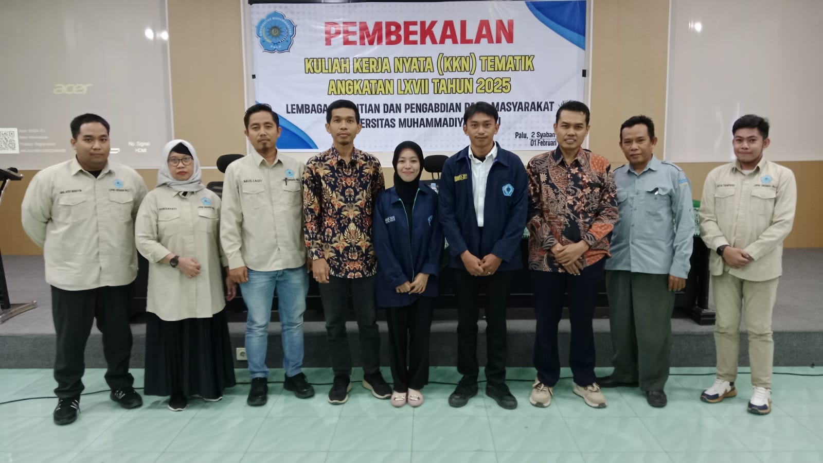 Kegiatan Ini pembekalan KKN ini di buka langsung oleh wakil rektor 1 bidang Akademik universitas muhammadiyah palu, pada tanggal 1 februari 2025 dan di ikuti oleh ketua lppm,divisi pengabdian,divisi penelitian dan undangan dari fakultas unismuh palu. dan juga jumlah KKN Tahun ini di ikuti 56 Mahasiswa terdiri dari FKM,TEKNIK,FISIP.